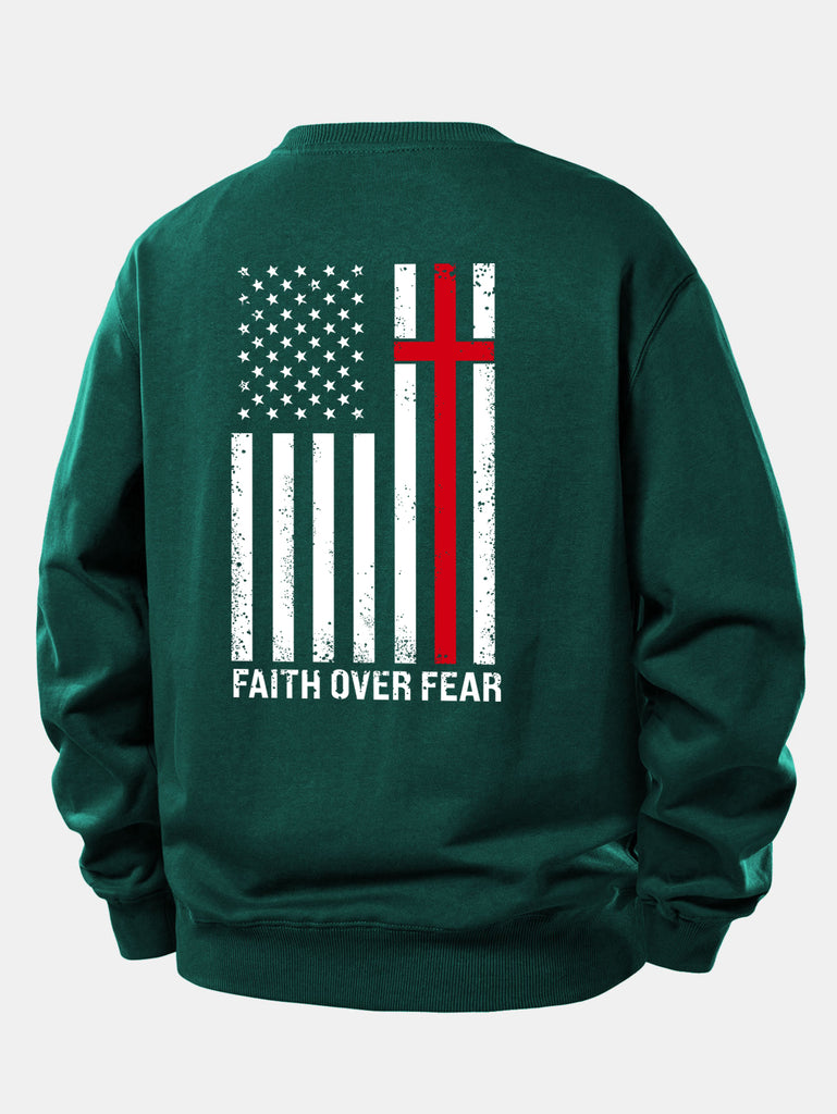 Faith Over Fear American Flag Print Relax Fit Sweatshirt