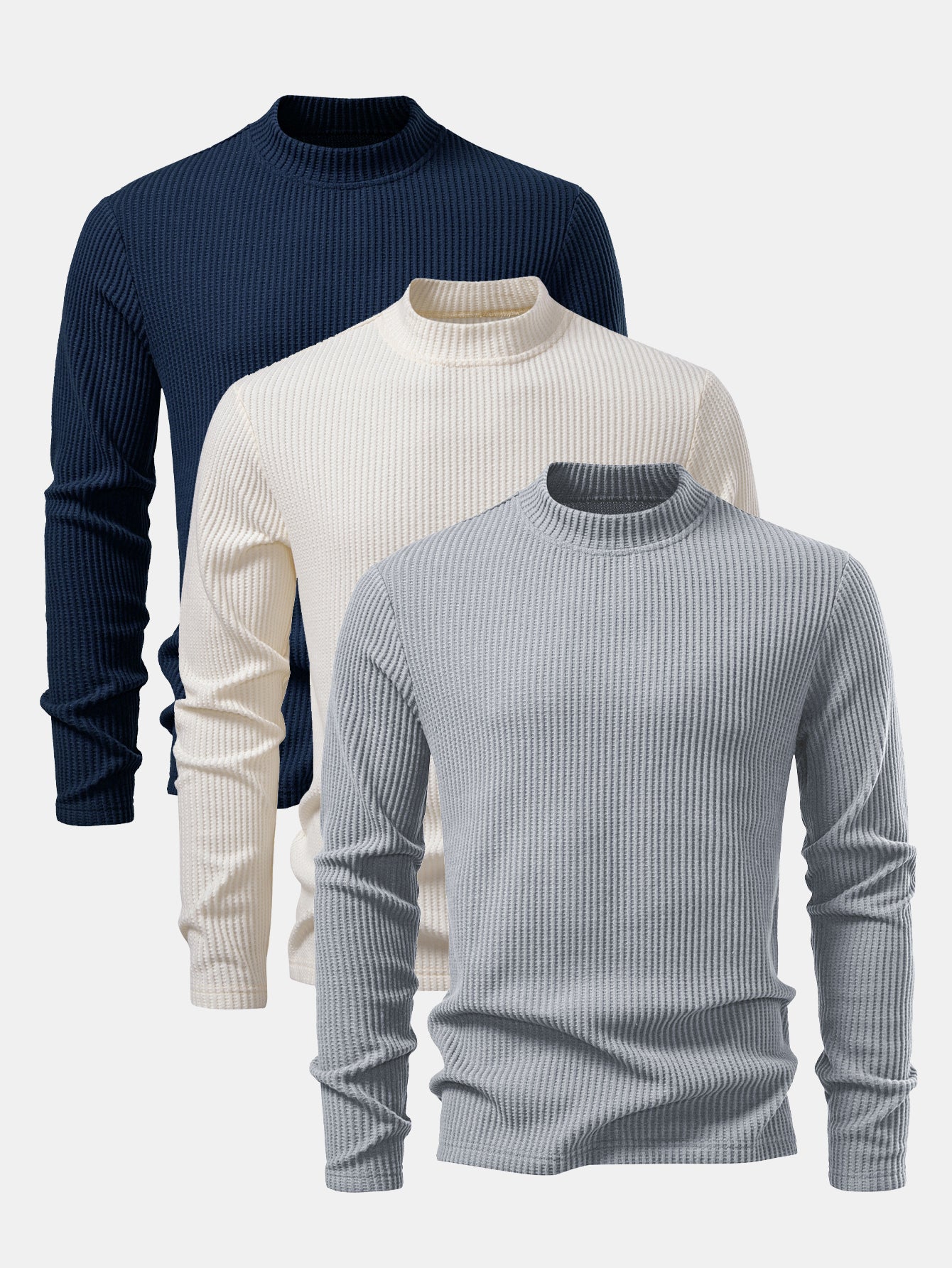 3 Pieces Long Sleeve Waffle Mock Neck T-Shirt