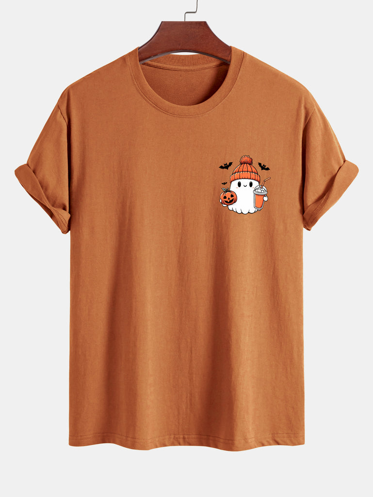 Regular Fit Halloween Ghost Pumpkin Print Cotton T-Shirt
