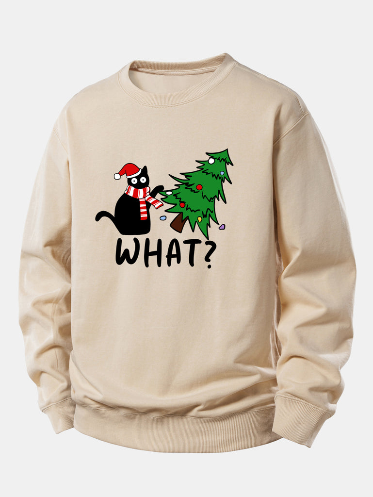 Christmas Naughty Cat Print Relax Fit Sweatshirt