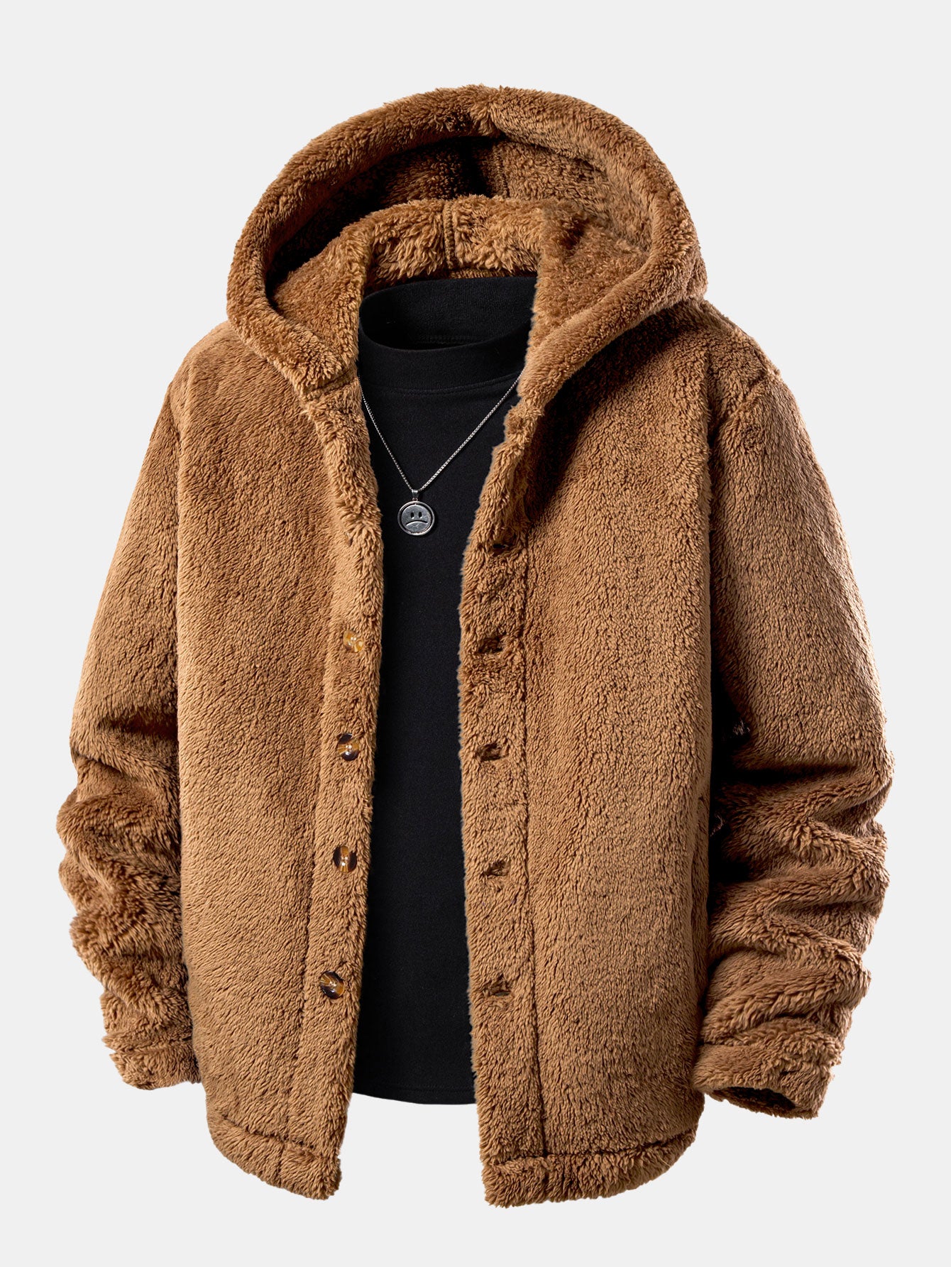 Teddy Fleece Button Up Hooded Coat